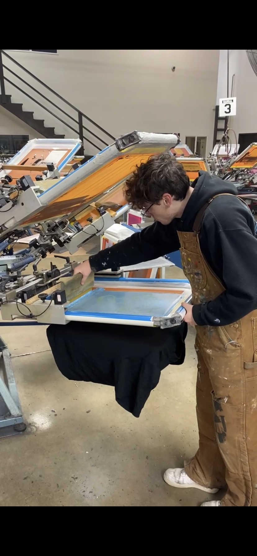 I began screen printing in 2019 in my room with a starter kit I had received as a gift. I would then get a job working in a screen printing shop where I would learn every step that goes into the process of clothing production. Through this experience, I was able to take the knowledge I had gained and start my own production company creating merch for businesses.